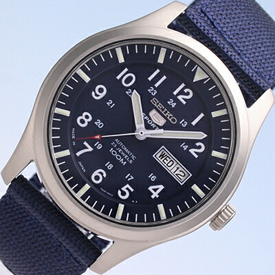 腕時計 時計 メンズ アナログ 自動巻き オートマティック 日本製 デイ デイト カジュアル ミリタリー 防水 ナイロン ネイビー 紺 ブルー 青 SNZG11J