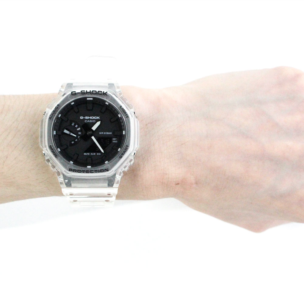腕時計 時計 メンズ 防水 クオーツ アナデジ 2針 スケルトン クリア ホワイト ブラック GA-2100SKE-7A