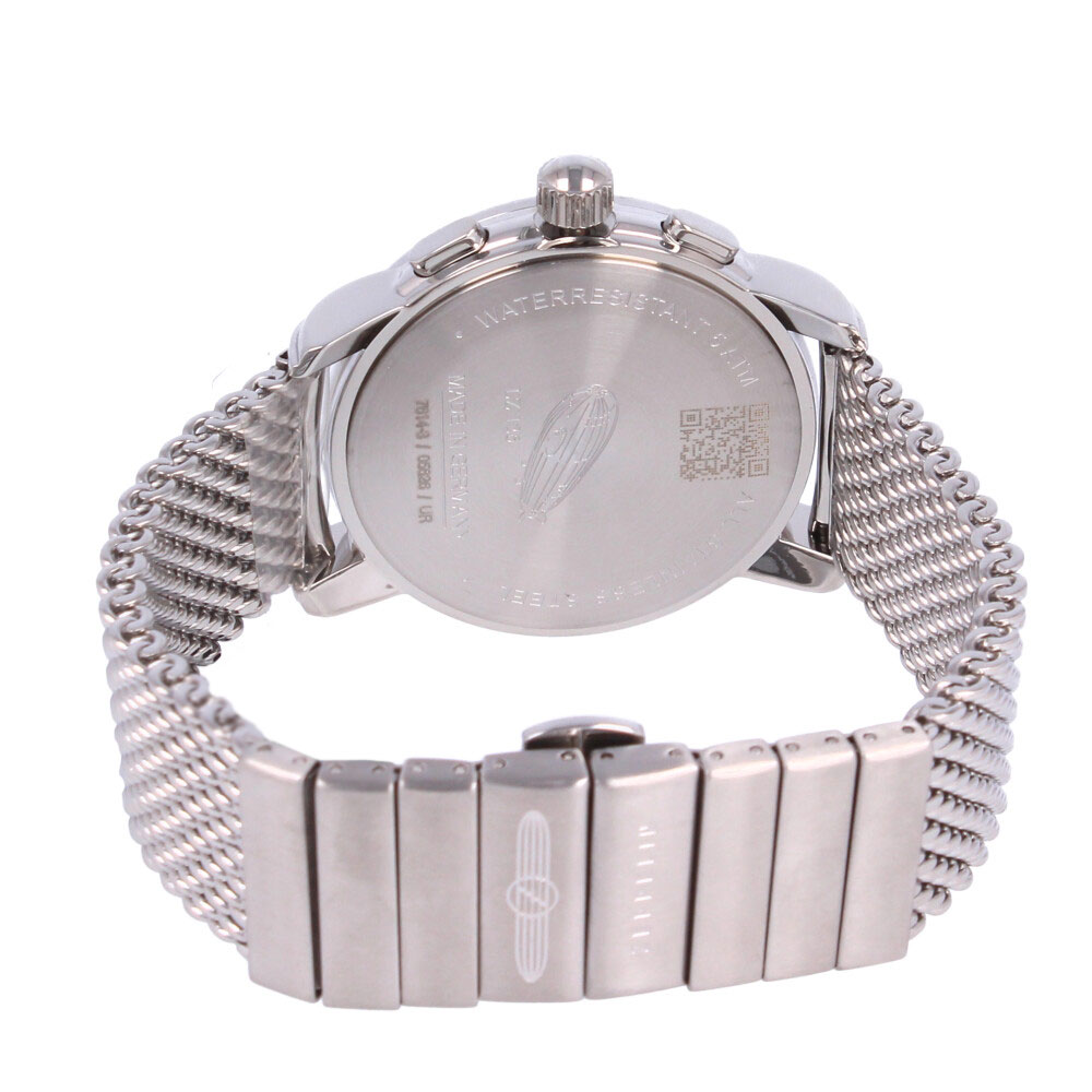 腕時計 時計 メンズ クオーツ クロノグラフ ステンレス メッシュ シルバー ネイビー 7614M-3