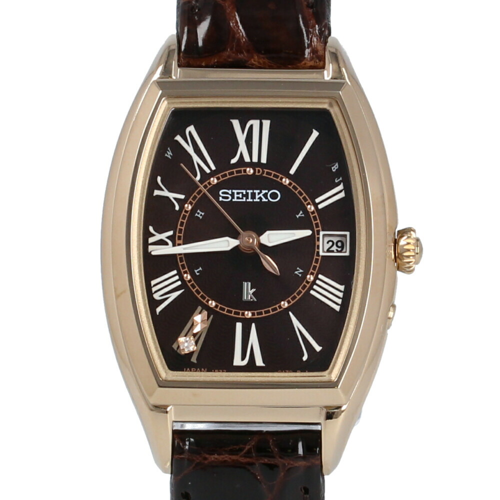 腕時計 時計 レディース アナログ 電波 ソーラー クオーツ 日本製 トノー型 ビジネス 仕事 就活 防水 レザー 革 ブラウン 茶 ゴールド 金 SSQW048
