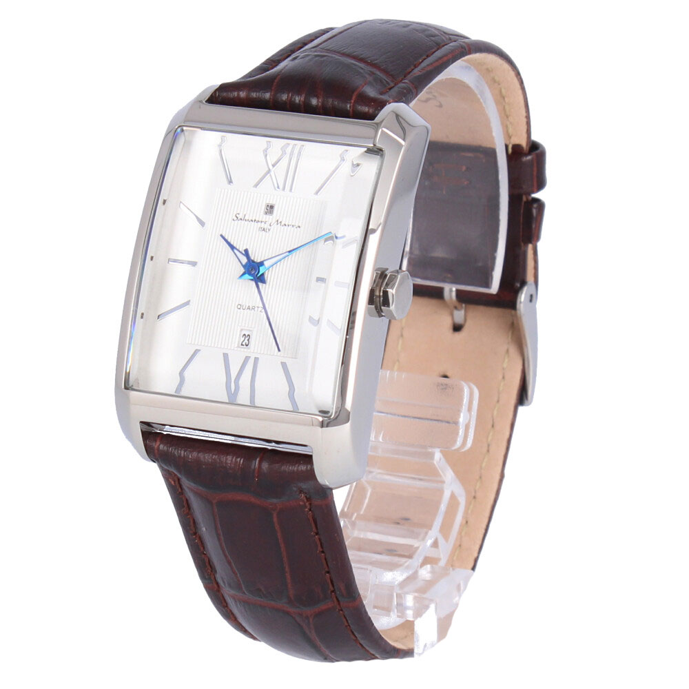 腕時計 時計 メンズ クオーツ レザー ブラウン ホワイト シルバー SM21101-SSWH