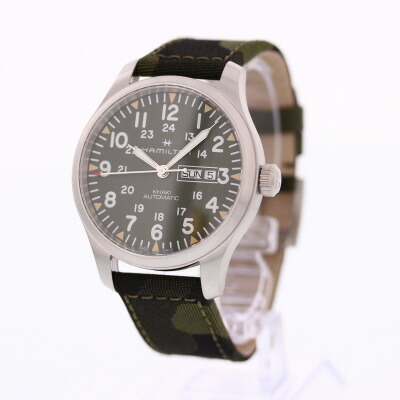 腕時計 時計 メンズ 自動巻き キャンバス カモフラ グリーン レザー ミリタリー カジュアル H70535061
