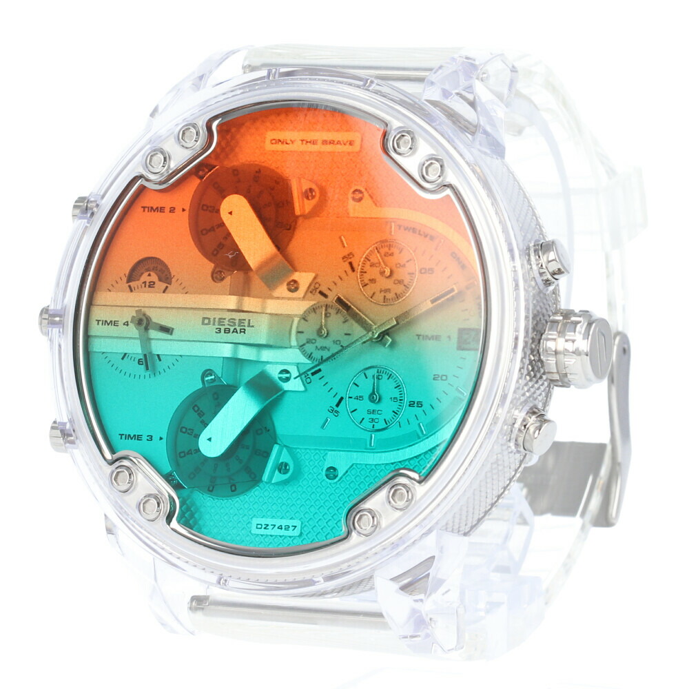腕時計 時計 メンズ 男性 アナログ クオーツ 電池 GMT 4タイムゾーン MR.DADDY ミスターダディ カジュアル ビジネス 防水 大きい ラバー ウレタン スケルトン 透明 グラデーション DZ7427
