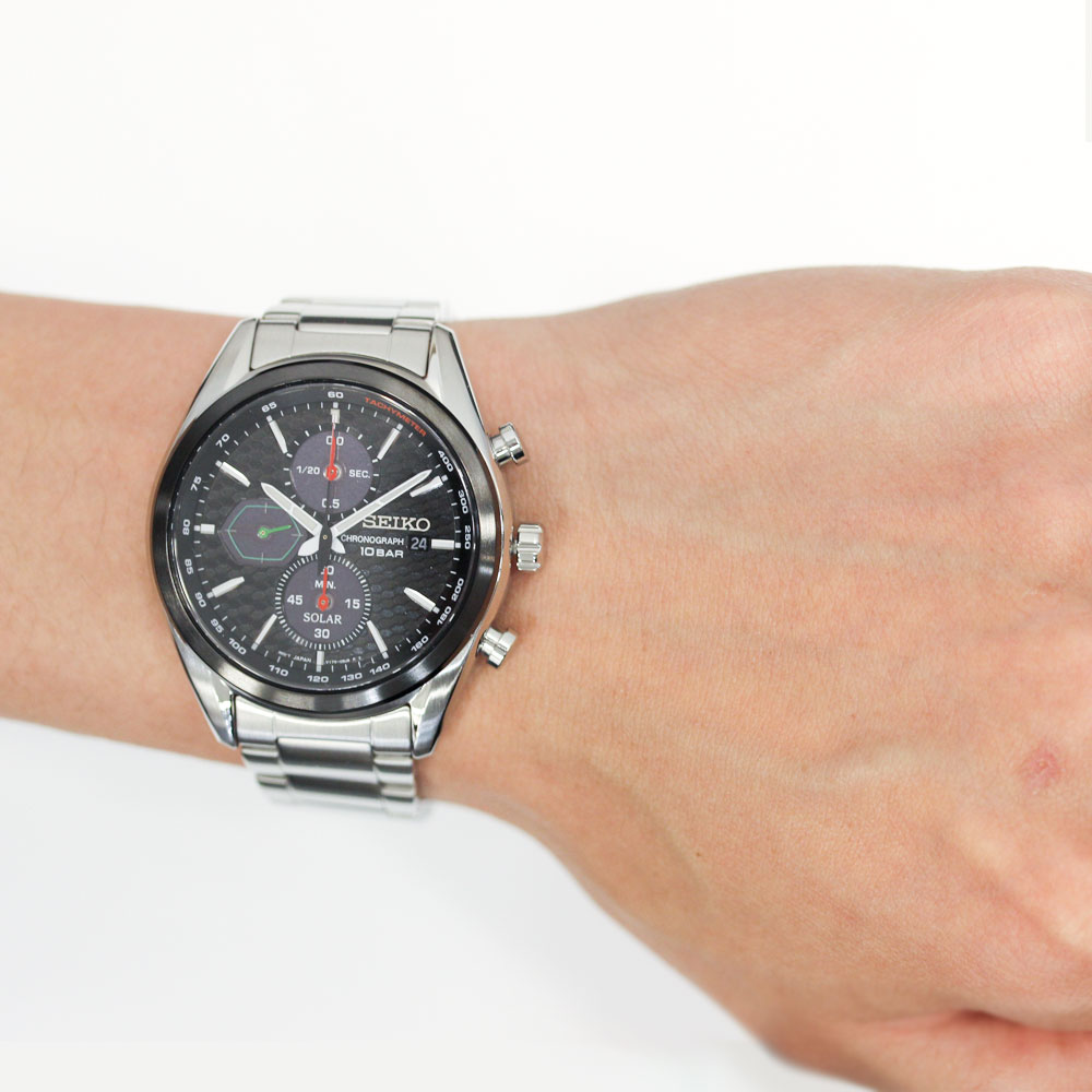 腕時計 時計 メンズ 防水 ソーラー クロノグラフ メタル シルバー ブラック SSC803P