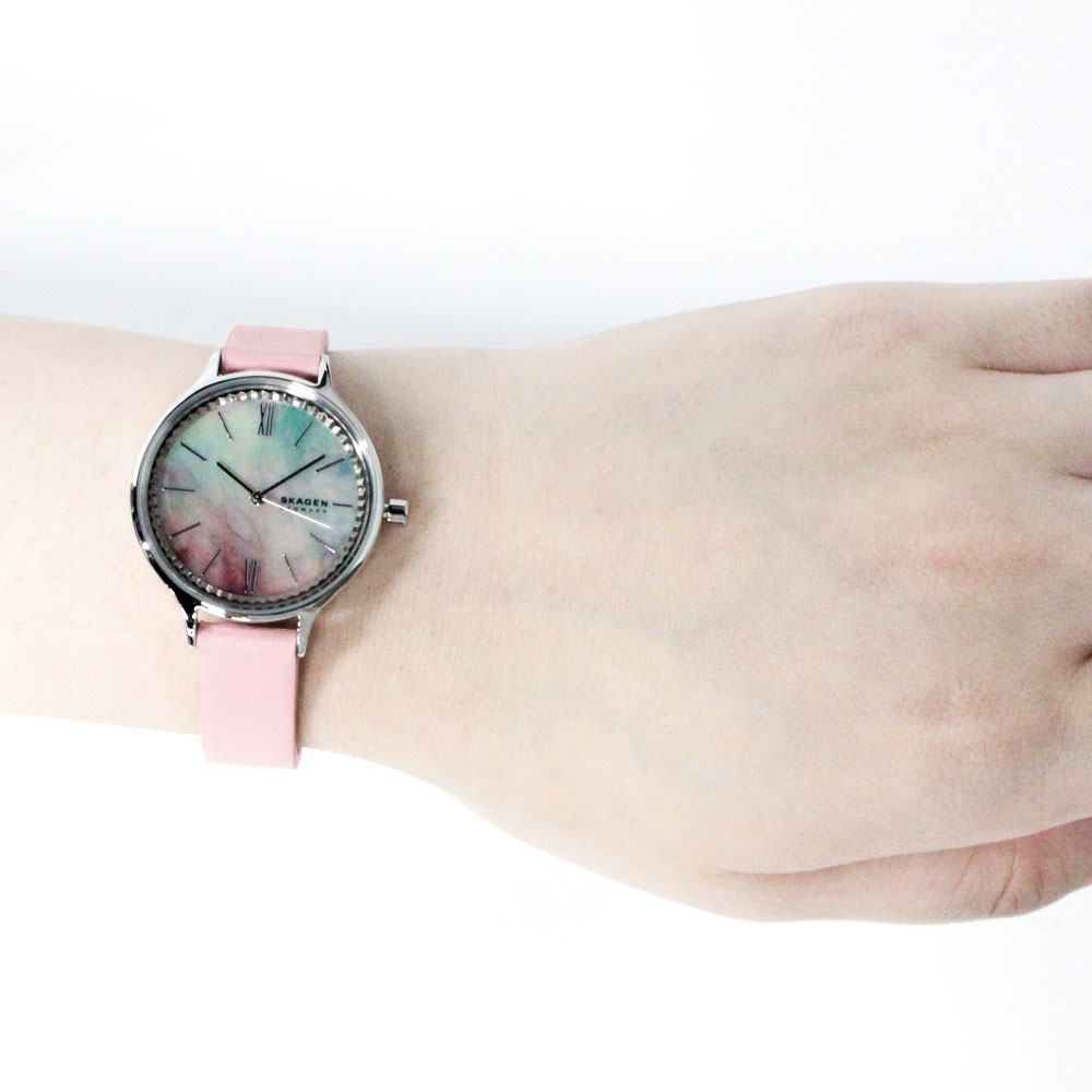 腕時計 時計 レディース クオーツ アナログ 北欧 3針 レザー ステンレス ピンク シルバー ブルー シェル SKW2976