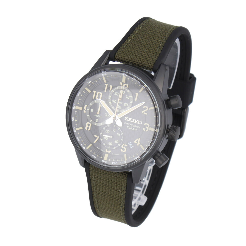 腕時計 時計 メンズ 防水 クオーツ アナログ クロノグラフ ステンレス ラバー カーキ グリーン ブラック SSB373P
