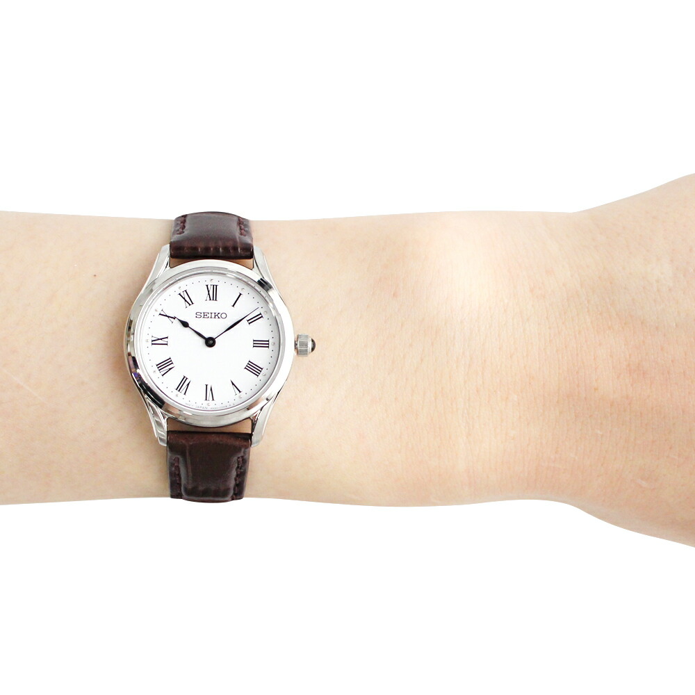腕時計 時計 レディース クオーツ アナログ 2針 ステンレス レザー ブラウン シルバー ホワイト SWR071P