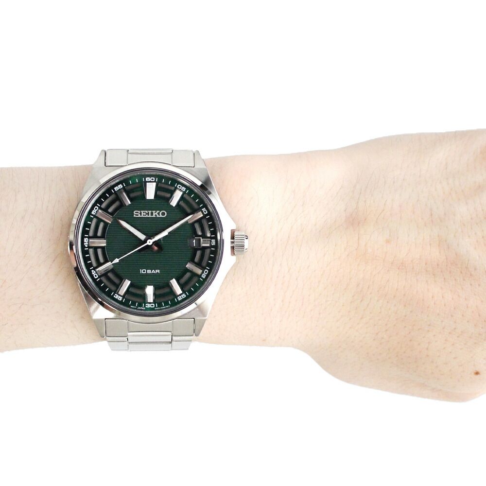 腕時計 時計 メンズ 防水 クオーツ アナログ 3針 ステンレス メタル シルバー グリーン SUR503P